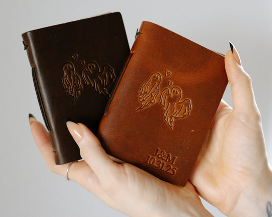 Personalized Leather Wedding Guestbook with Ghost Couple