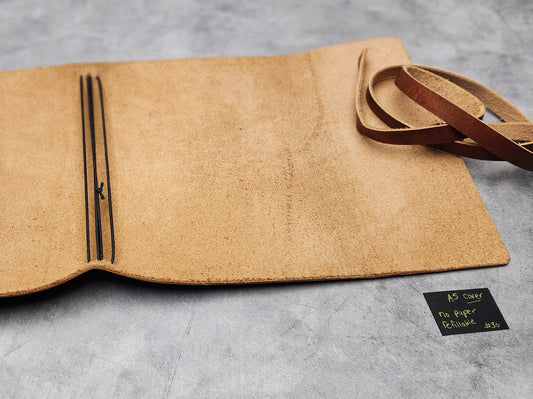 Misprint sale A5 (5.5x8.5") REFILLABLE leather wrap journal cover- tan (#30) COVER ONLY "Katie"
