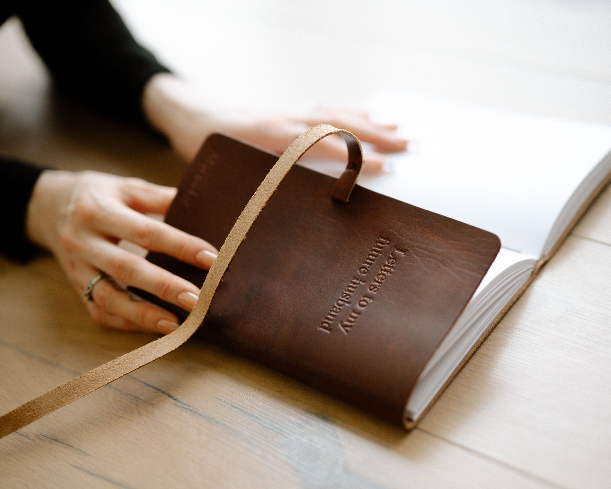 Celebrate your love with this Personalized Leather Journal, designed for writing heartfelt letters to your husband or wife. This timeless keepsake is perfect for capturing memories, recording relationship milestones, or sharing your favorite things about your partner. Whether you're jotting down love notes, creating a scrapbook with photos, or crafting an unforgettable 3rd anniversary gift (leather anniversary), this journal will be treasured for years to come.