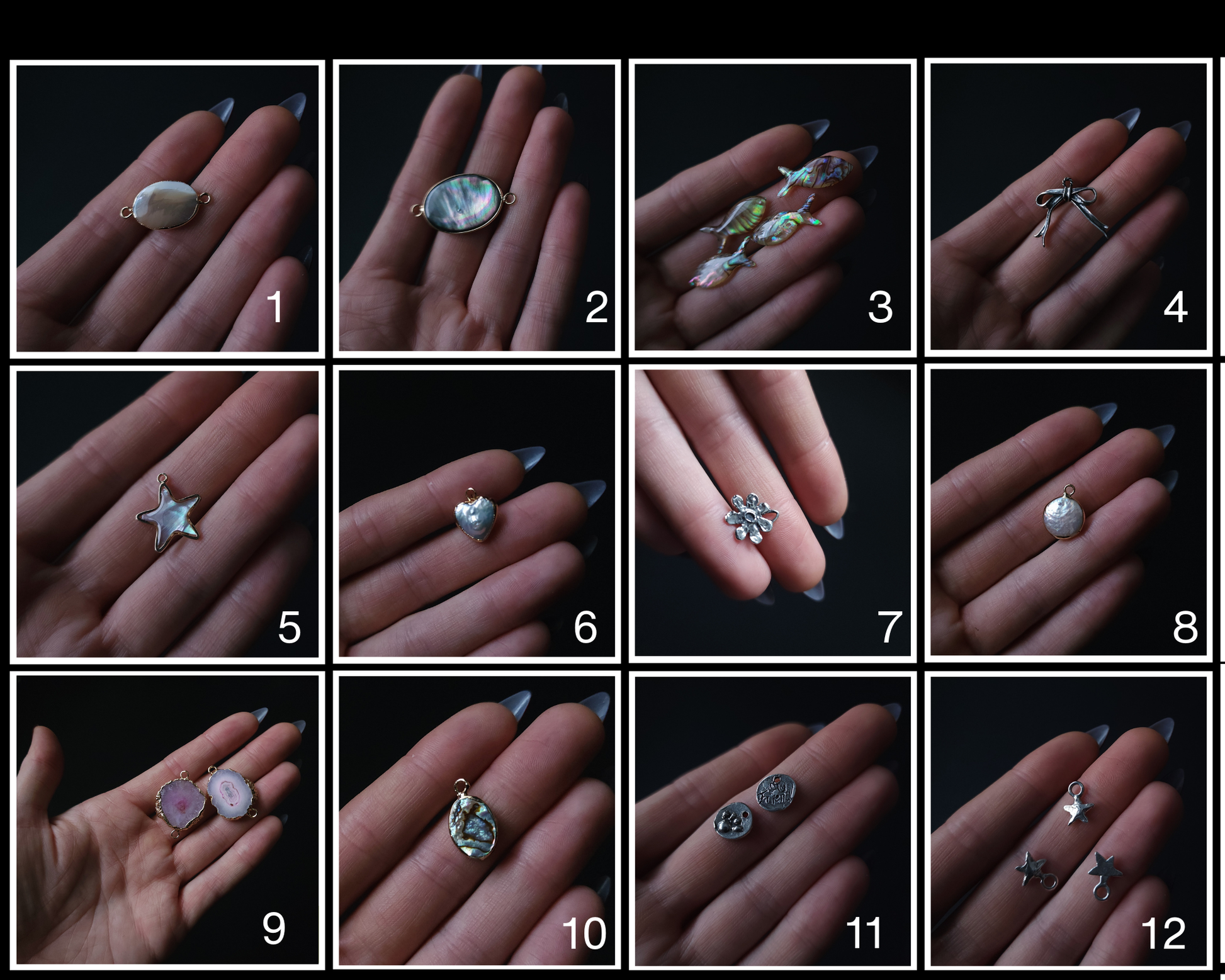 Geodes & agates / stone connectors: https://www.forestnine.com/products/journal-charms-geodes-agates