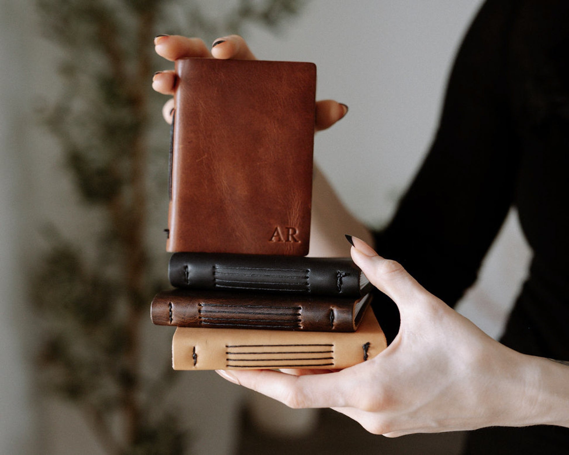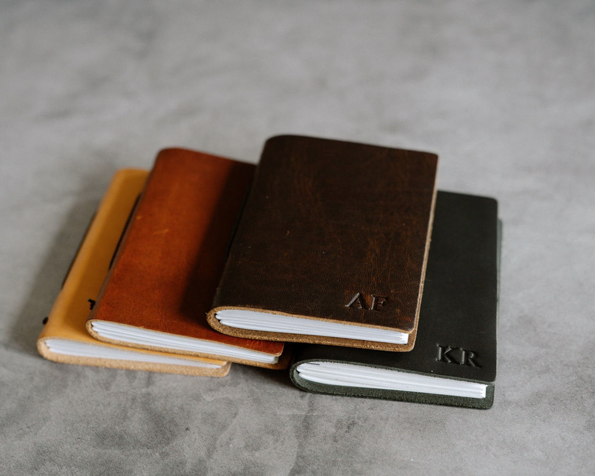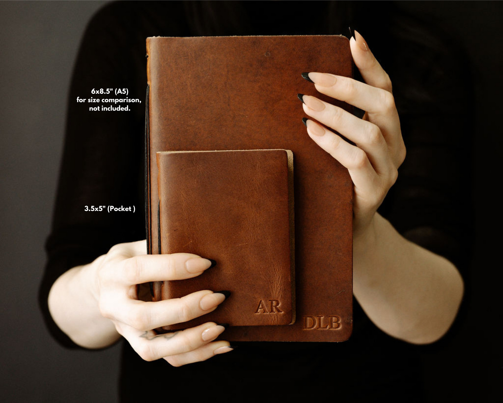 Capture your thoughts, ideas, or sketches on the go with our Personalized Leather Pocket Notebook. Handcrafted from durable full-grain rustic leather, this compact journal is designed to last and develop unique character with time and use. Personalize your notebook with custom embossing to create a truly unique piece, perfect for yourself or as a thoughtful gift for writers, travelers, and creatives.